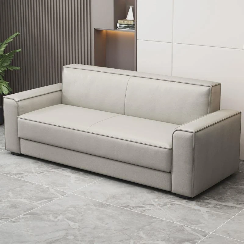 シンプルでモダンなビジネス用レザーソファ|来客用・リラックス空間に最適なダブル&トリプルシートの組み合わせ|オフィスにぴったりの極簡デザイン!