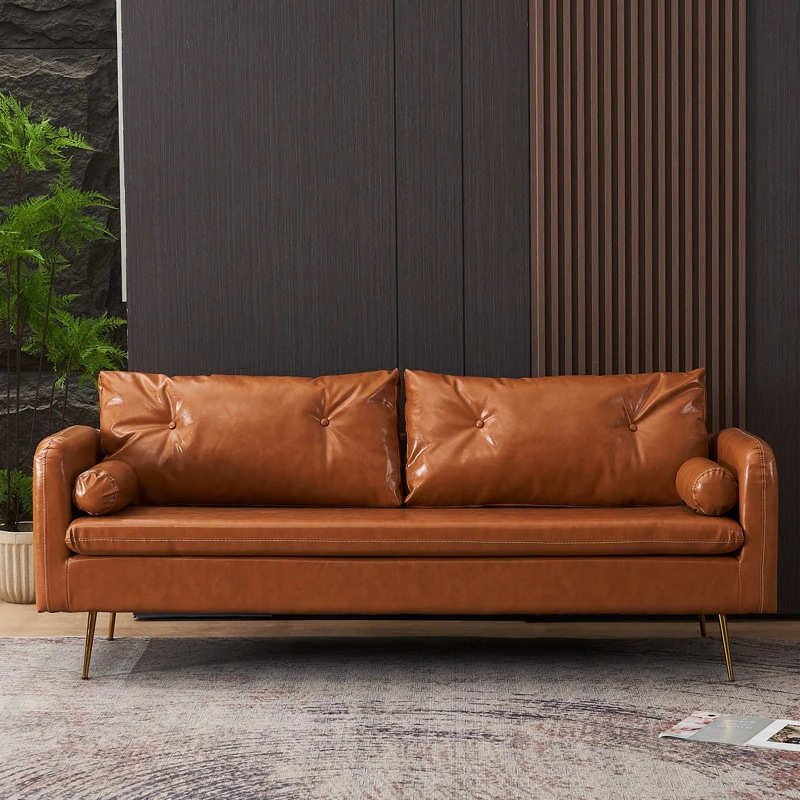北欧風シンプルソファ|小型リビング向け、イタリアンラグジュアリーのアパート用|おしゃれなレザー製、人気のダブル3人掛けソファで、快適な空間を演出!