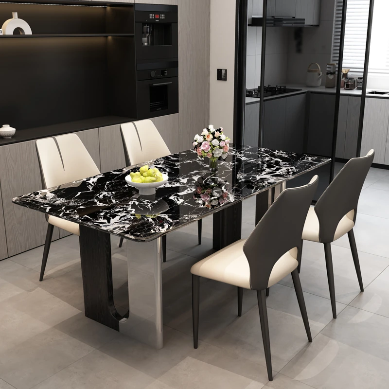 2025年新作!天然大理石使用の軽奢モダン食卓セット - おしゃれなリビングにぴったりなシンプルなデザインのダイニングテーブル&チェアコンビネーション